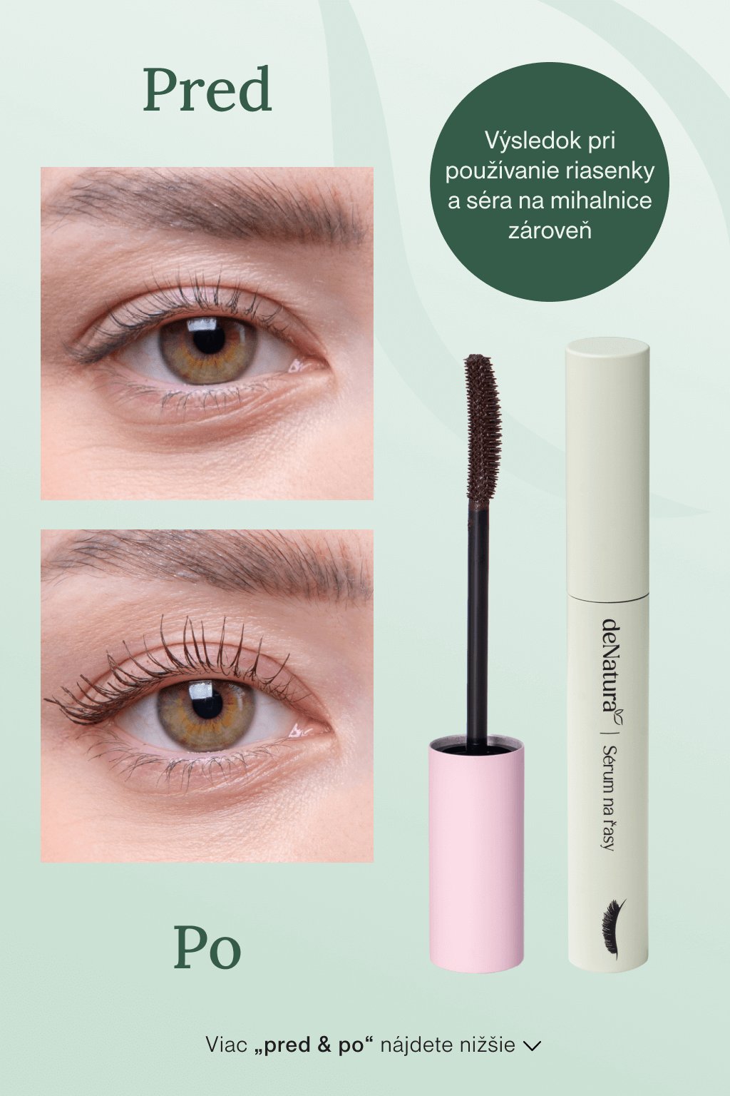 Samotné sérum na riasy nepôsobí ako okamžitý lifting rias z kozmetického salónu, ale vďaka svojmu dlhodobému pôsobeniu dokáže vytvoriť veľmi podobný vizuálny výsledok. Ak teda premýšľate nad tým, ako si prirodzene pozdvihnúť riasy bez potreby trvalej ondulácie alebo mechanického natáčania, kvalitné rastové sérum s aktívnymi zložkami je tou správnou voľbou. Pri pravidelnom používaní sa riasy viditeľne predĺžia, zhustnú a stanú sa pružnejšími. Získajú prirodzený tvar a väčšie zakrivenie, ktoré zvýrazní pohľad - žiadne natáčanie, žiadne lepidlo, len každodenná starostlivosť.