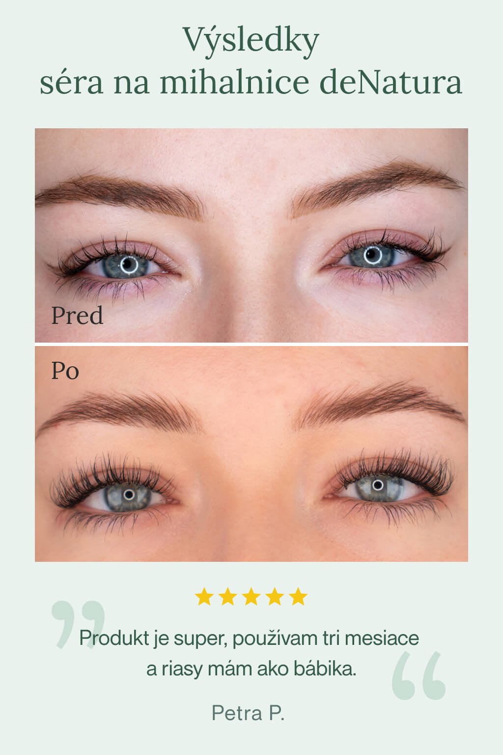 Na vývoji rastových sér neustále pracujeme. Po výbere najlepšieho zloženia preveríme jeho účinnosť aj bezpečnosť, a keď je všetko dokonalé, prichádza to najdôležitejšie – testovanie našimi zákazníčkami. Pozrite sa, aké výsledky dosiahlo naše sérum na mihalnice!