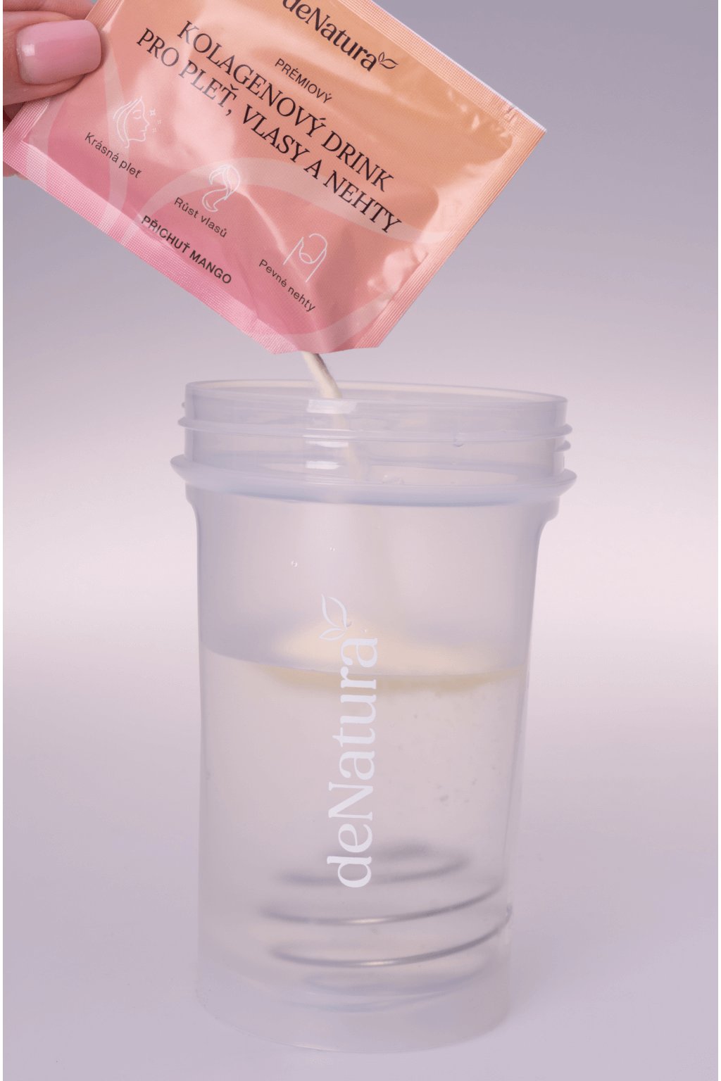Náš prémiový kolagénový drink pomáha zlepšiť pevnosť a hydratáciu pleti, zmierniť vrásky a zároveň sa zvnútra stará aj o vlasy a nechty. Je založený na kombinácii rybieho kolagénu Naticol®, kyseliny hyalurónovej a rastlinných ceramidov, ktorých účinky na hydratáciu, elasticitu a hladší vzhľad pleti potvrdzujú klinické štúdie. Práve tento nápoj si môžete v shakeri jednoducho rozmiešať, či už ste doma, v práci alebo na cestách. Vďaka praktickému baleniu v samostatných sáčkoch máte navyše vždy presne odmeranú dennú dávku a v shakeri z neho počas pár sekúnd pripravíte dokonale hladký nápoj.